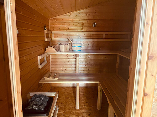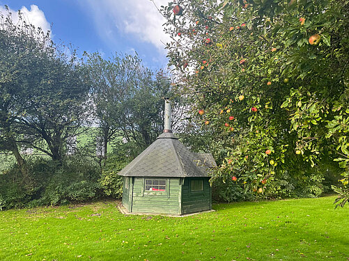 Zum gemütlichen Verweilen haben wir eine Grillkota und für die Entspannung unsere Sauna.
