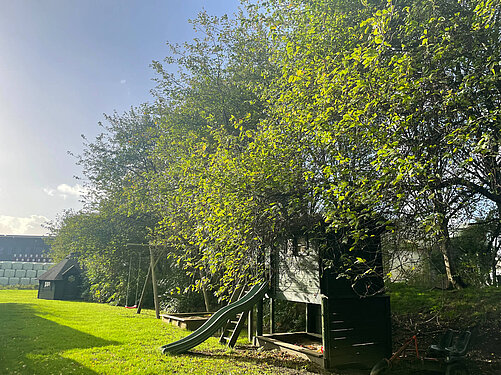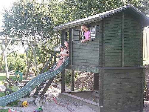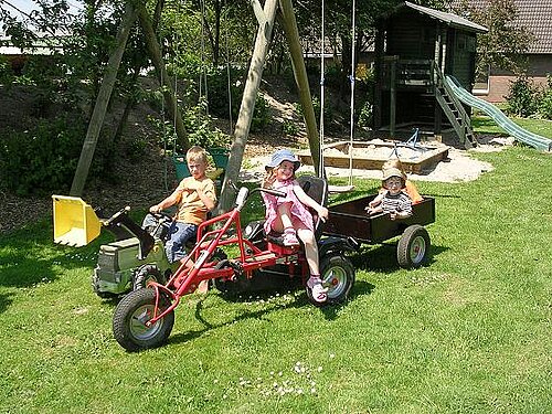 Direkt vor dem Ferienhäusern befindet sich der Spielplatz mit Spielhaus, Rutsche, Schaukel und zwei Sandkisten. Auch ein kleiner Fußballplatz ist dort. Dinocars stehen für einen Ausflug zum Deich zur Verfügung.