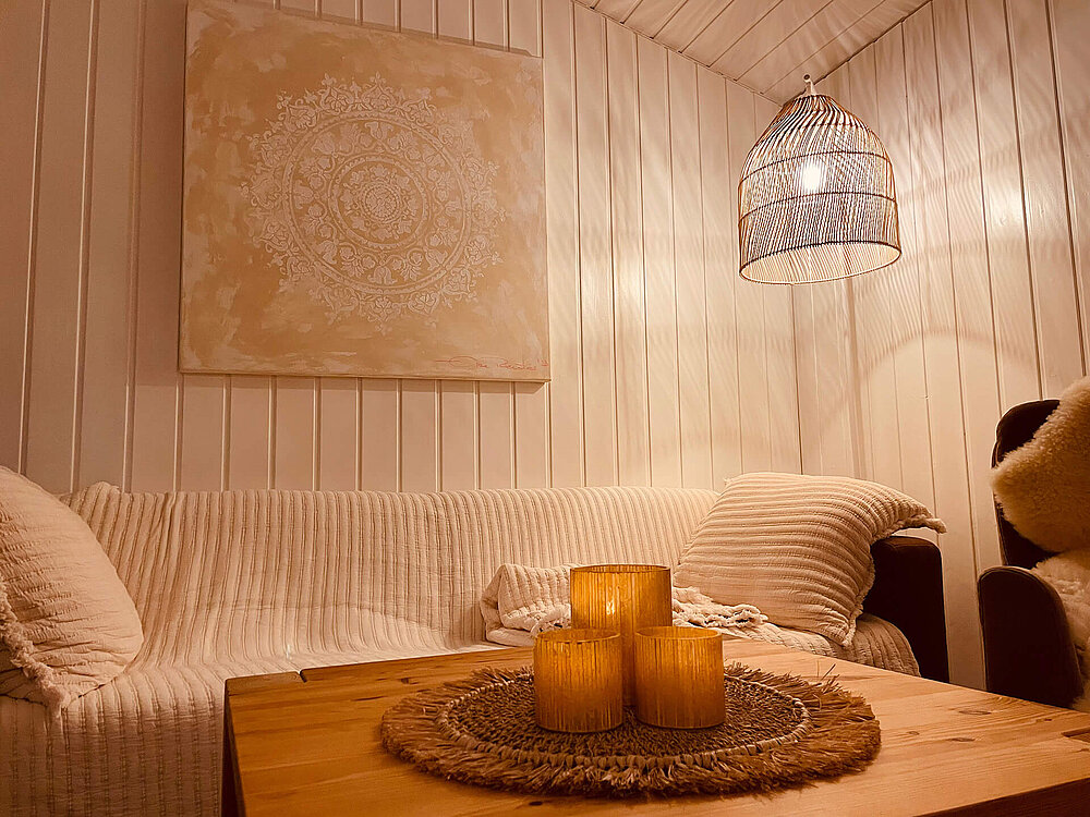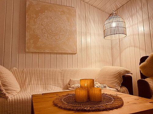 Zwischen den beiden Ferienhäusern steht unsere Sauna